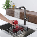 Experience convenience with a multifunctional sprayer that offers both a concentrated stream for scrubbing and a broad spray for rinsing delicate fruits. Elevate the aesthetics of your kitchen with a sleek, modern faucet design that seamlessly complements any style or theme.